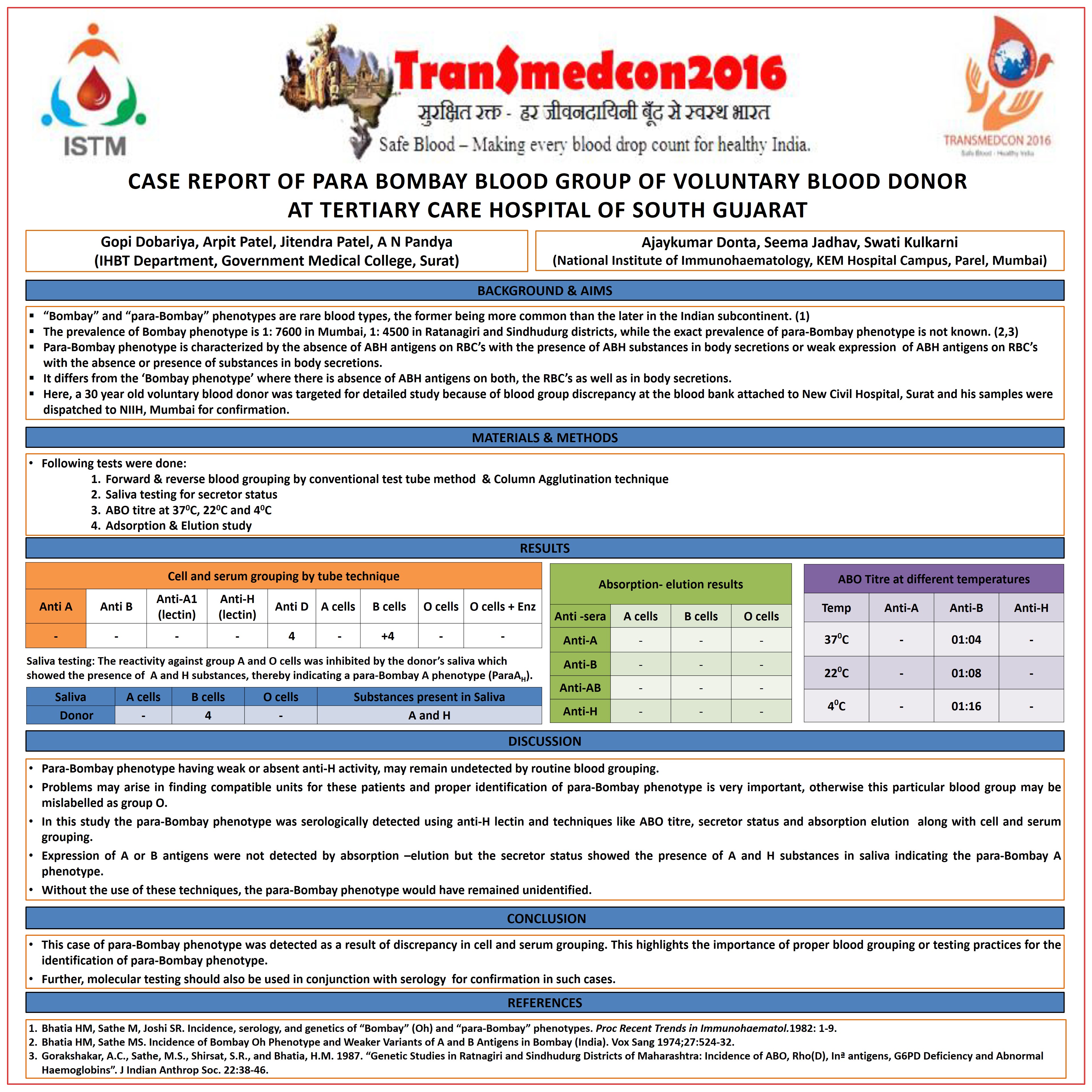 23. Rakesh P. Pimpaldara, Arpit C. Patel, Jitendra Patel, Snehal Patel, A. N. Pandya, Sangita Wadhwani. A Study of Irregular Antibodies in 200 Multi-Transfused Patients. Journal of Evolution of Medical and Dental Sciences 2015; Vol. 4, Issue 73, September 10; Page: 12659-12667, DOI: 10.14260/jemds/2015/1825