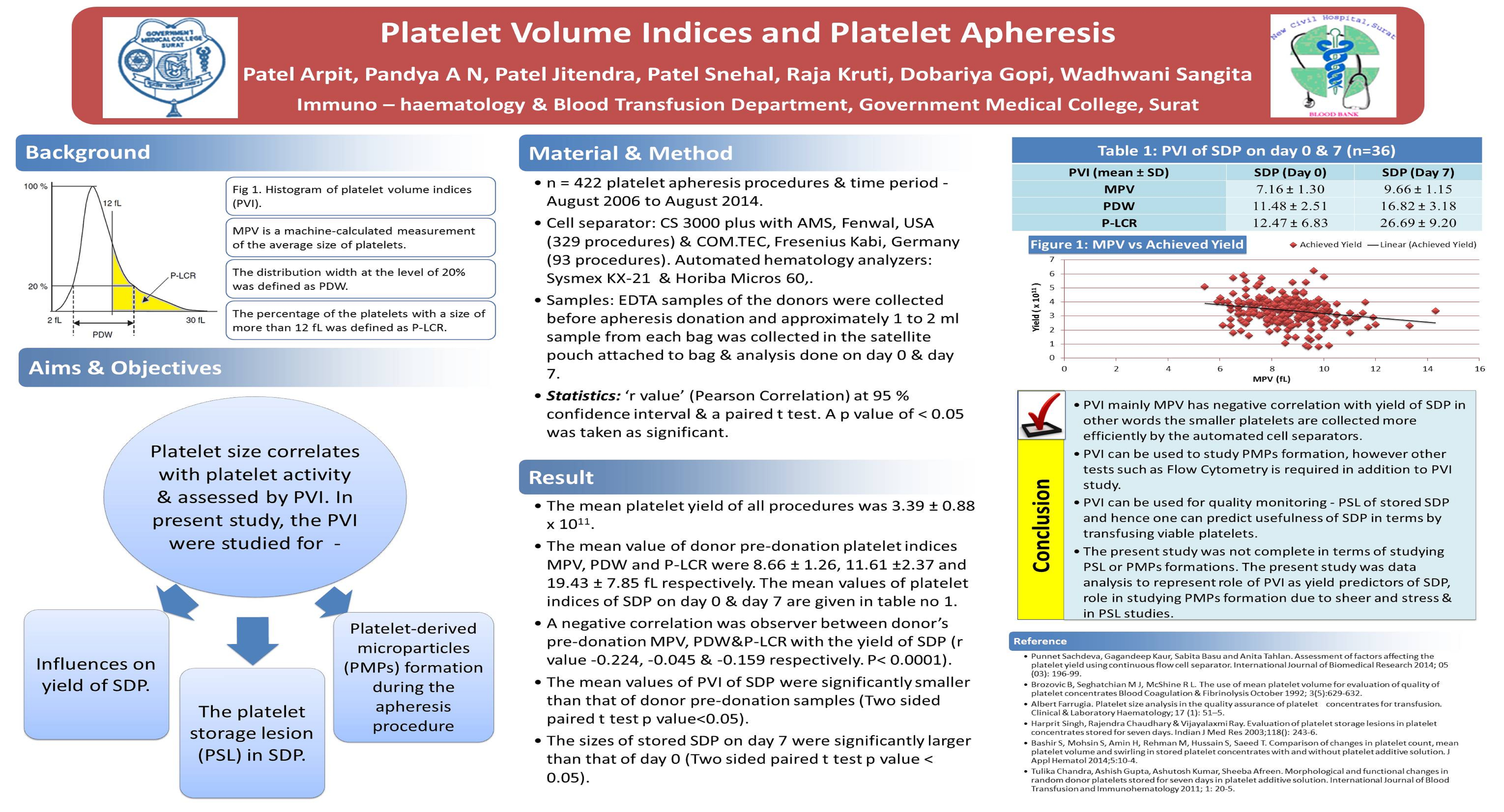 24. Arpit C Patel, Jitendra Patel, Snehal G Patel, Gopi Dobariya, Kruti Raja, Amrish N Pandya. The study of platelet volume indices in platelet aphaeresis procedure: an experience of 271 platelet aphaeresis procedures. National Journal of Medical Research July September 2015; 5(3): 207-10.